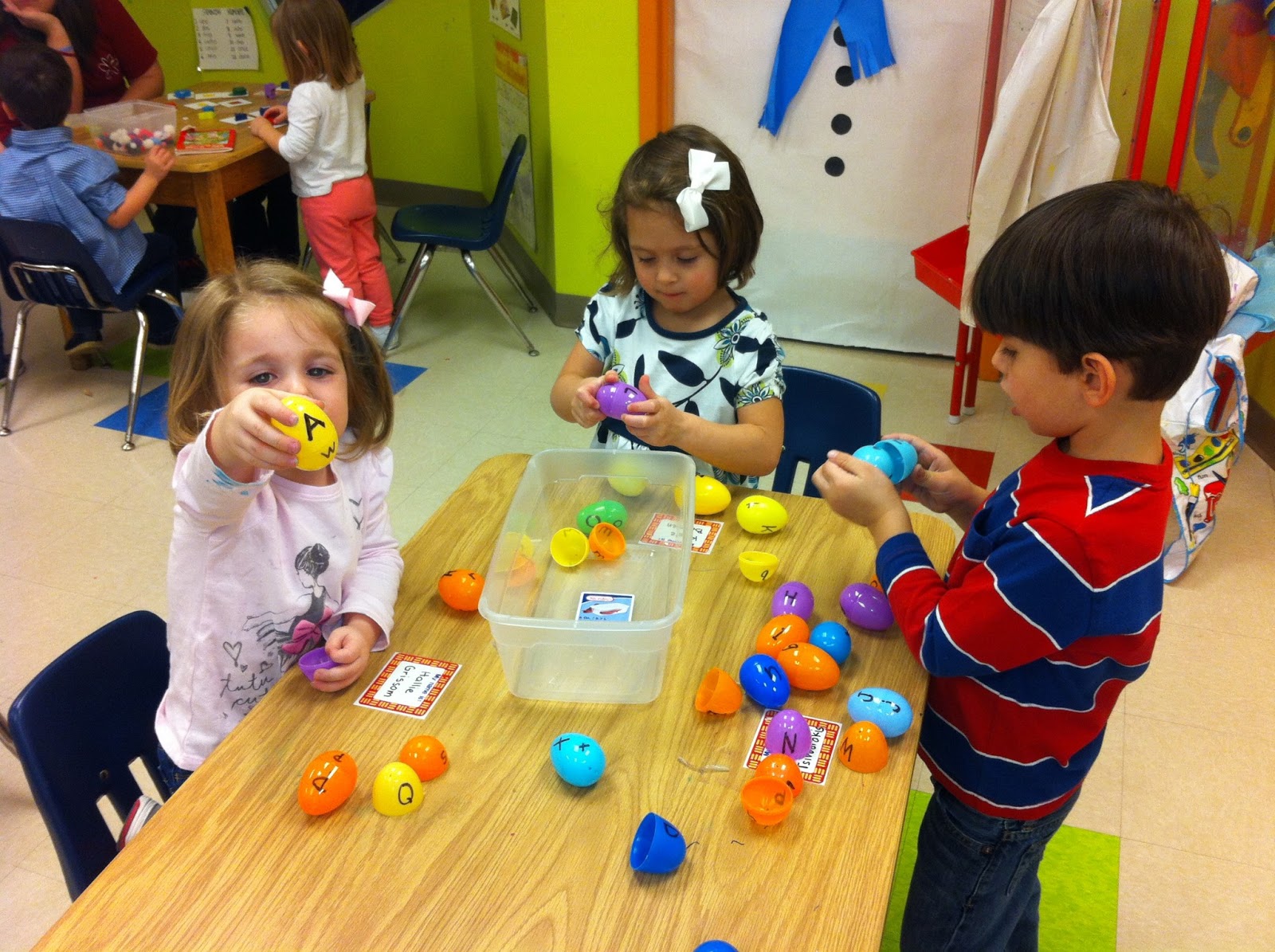 We had this bulletin board to go with our theme "All About me", as way of learning their names in a fun way. They were learning letters and counting too!